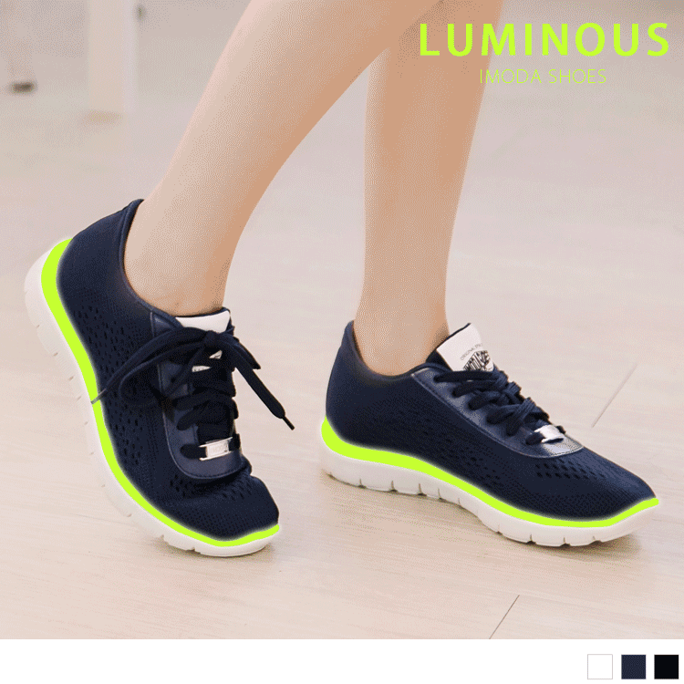 鞋款在日間穿著會吸收日光,在夜晚慢跑時,鞋緣會有明顯的夜光效果。