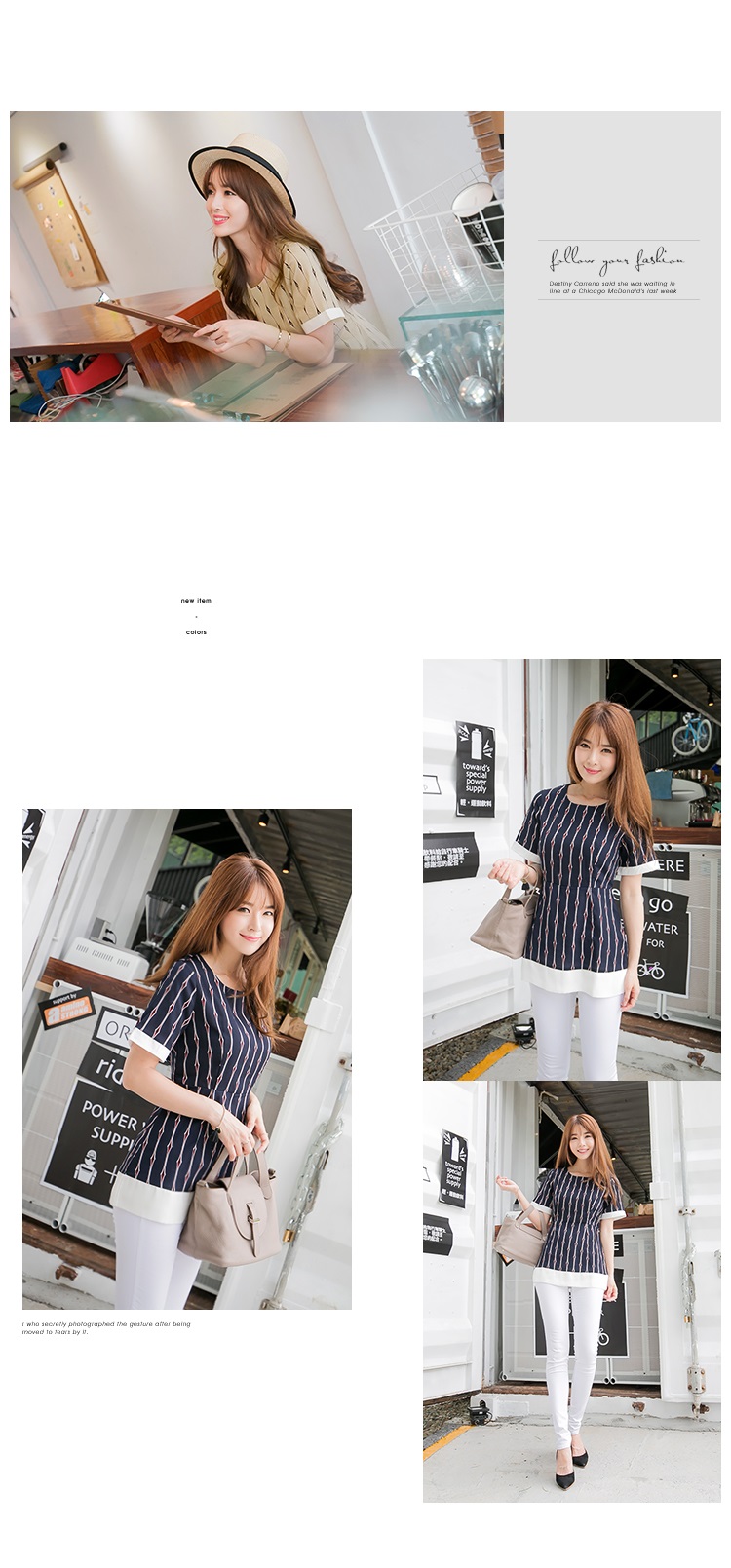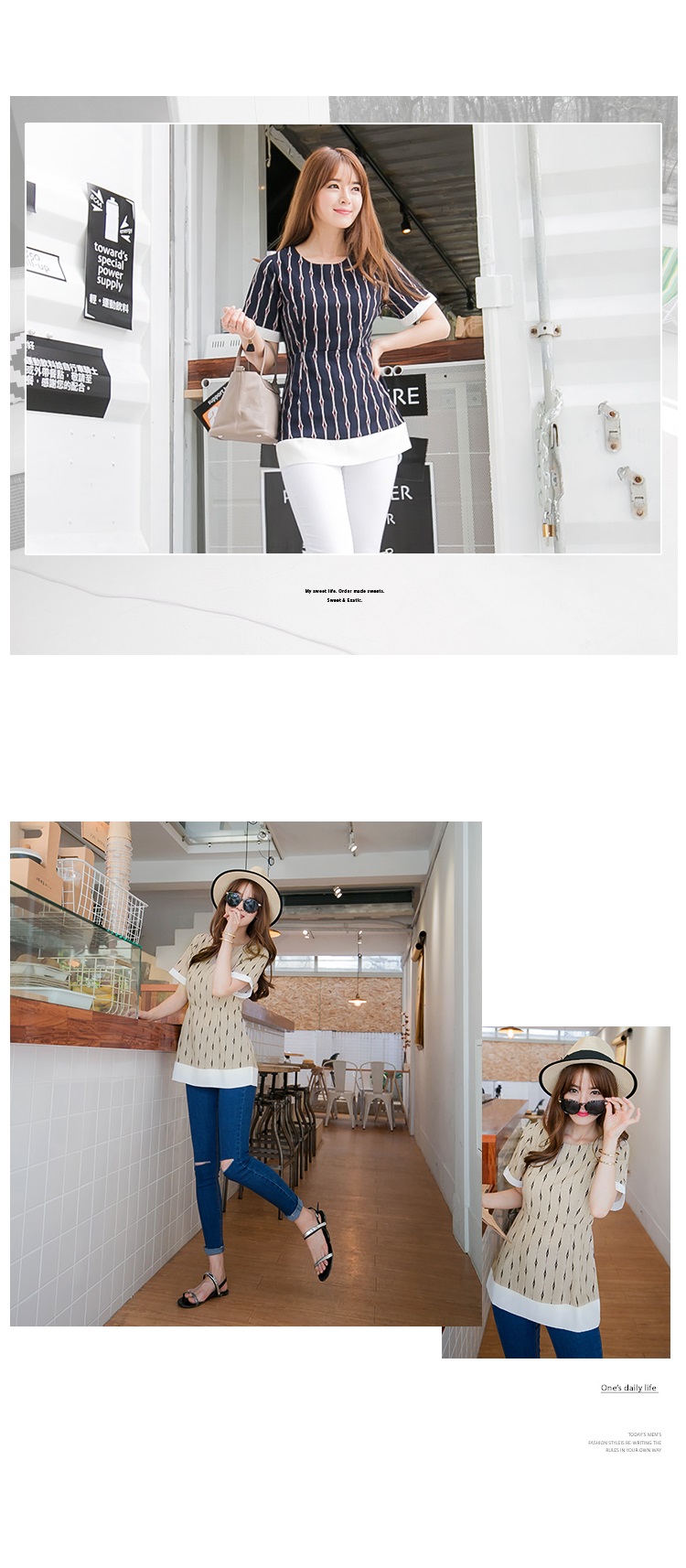 OB嚴選衣服種類最多折扣非常優惠【春夏斷碼-2件59折】輕甜動人~條紋X肩膀蕾絲連袖前短後長上衣.3色 - 引用人 ... ... 引用清單