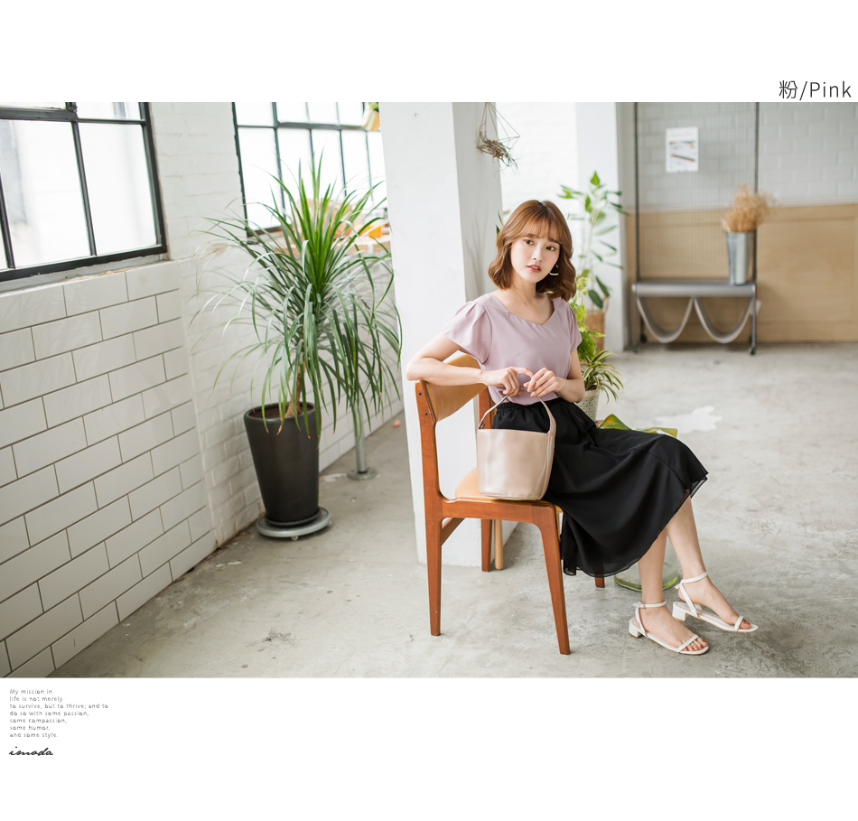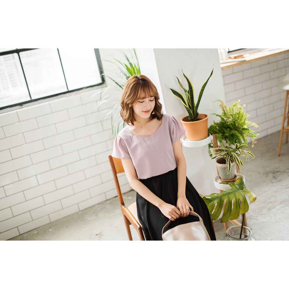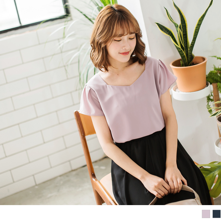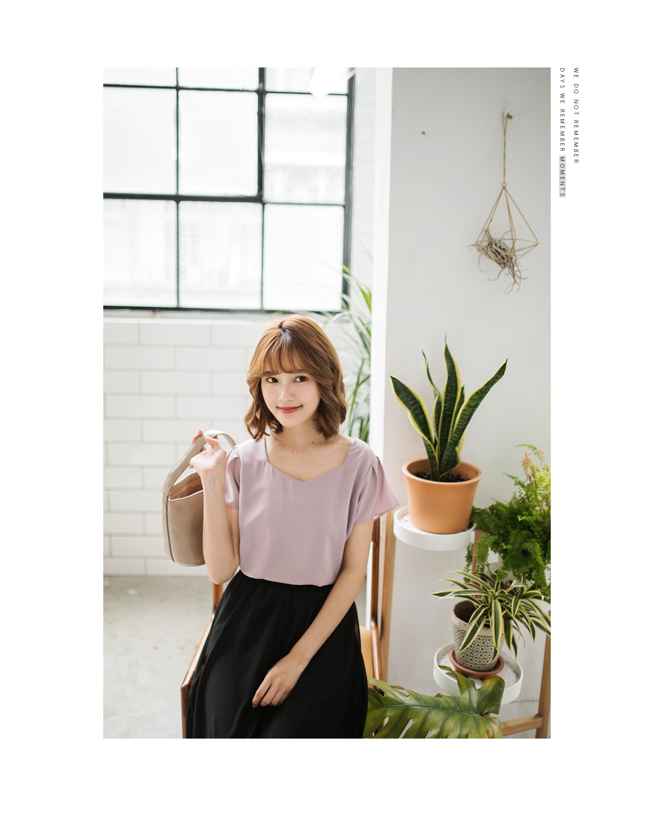簡約的素色有了小喇叭袖的造型,增添穿搭重點,時尚有型~