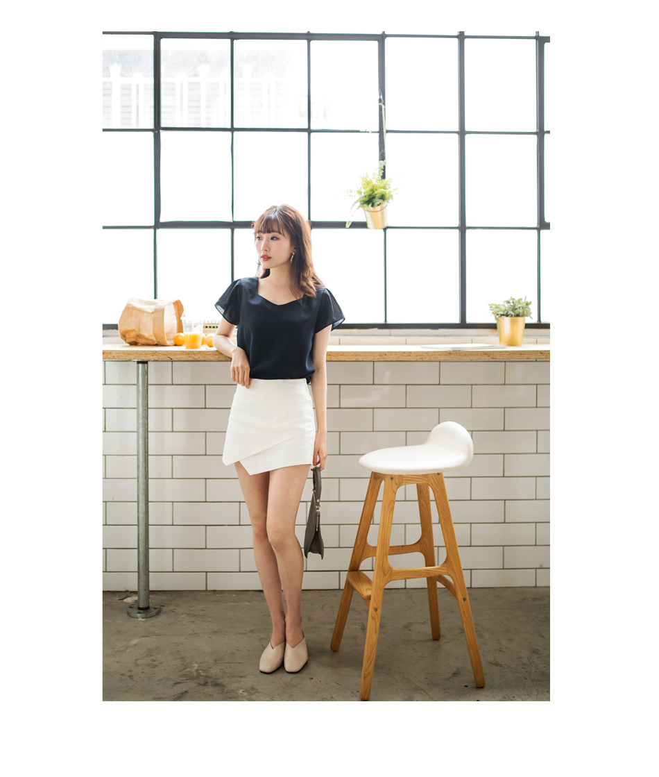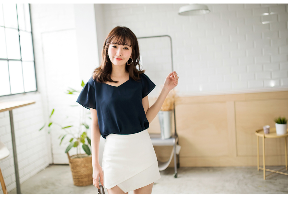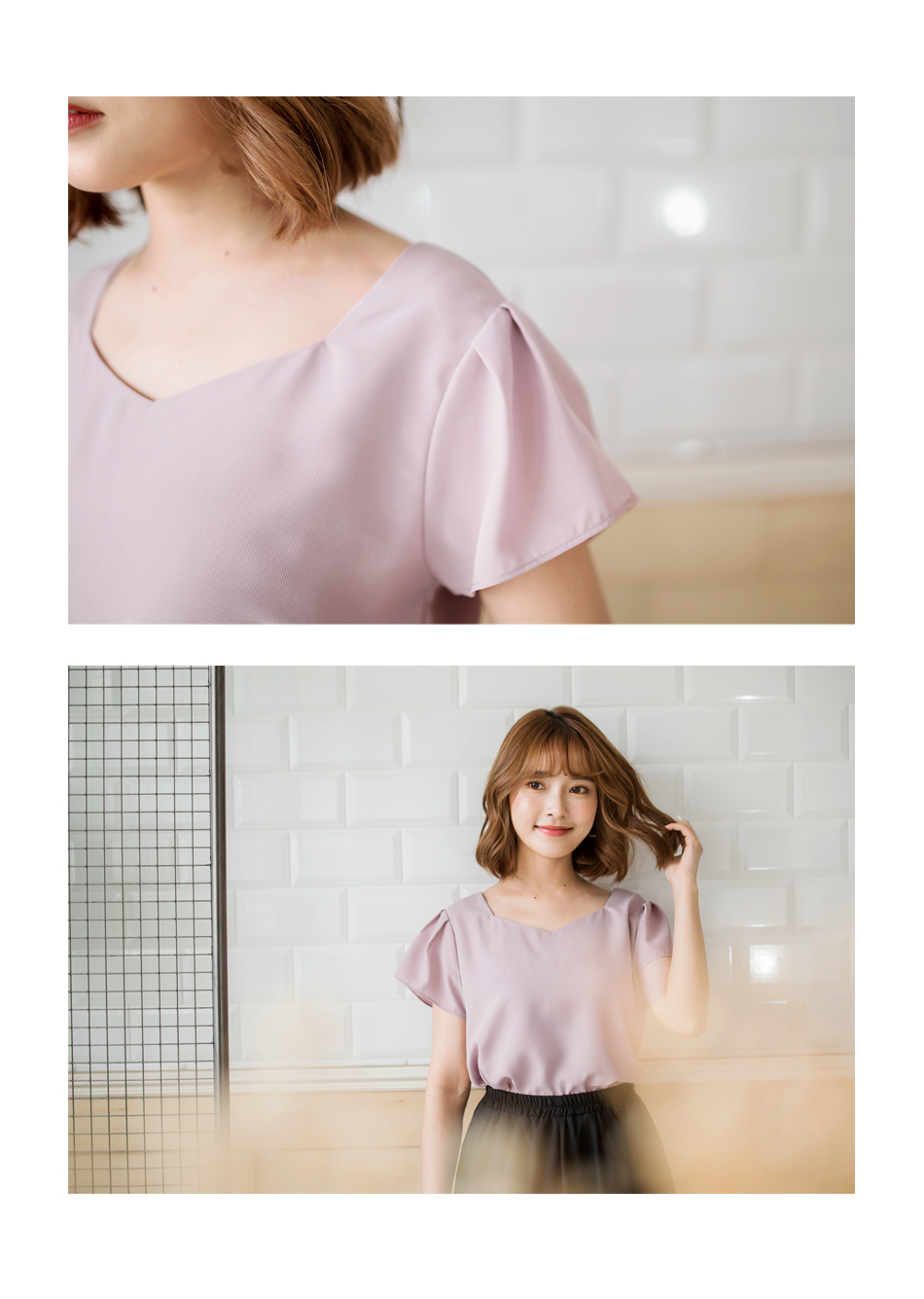 簡約的素色有了小喇叭袖的造型,增添穿搭重點,時尚有型~