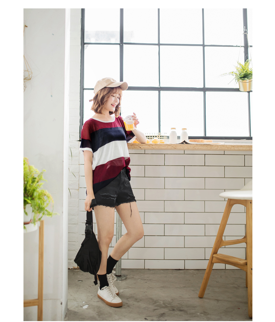 原宿的撞色元素加在針織衣著上, 讓你穿上它有街頭的感受~ 並且搭上寬版的牛仔褲內紮, 玩出時尚的又前衛的潮流感! ********************** 小提醒: 材質會透建議自行內搭衣物 深色 售價:319