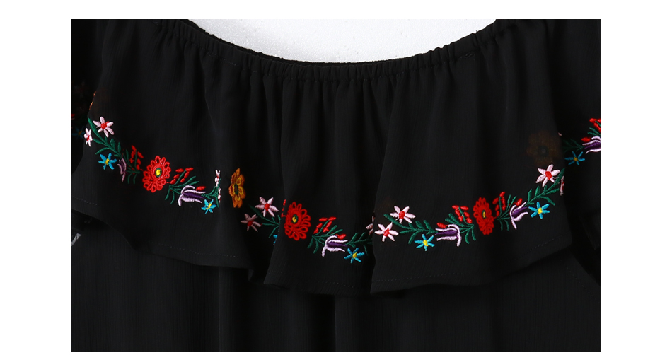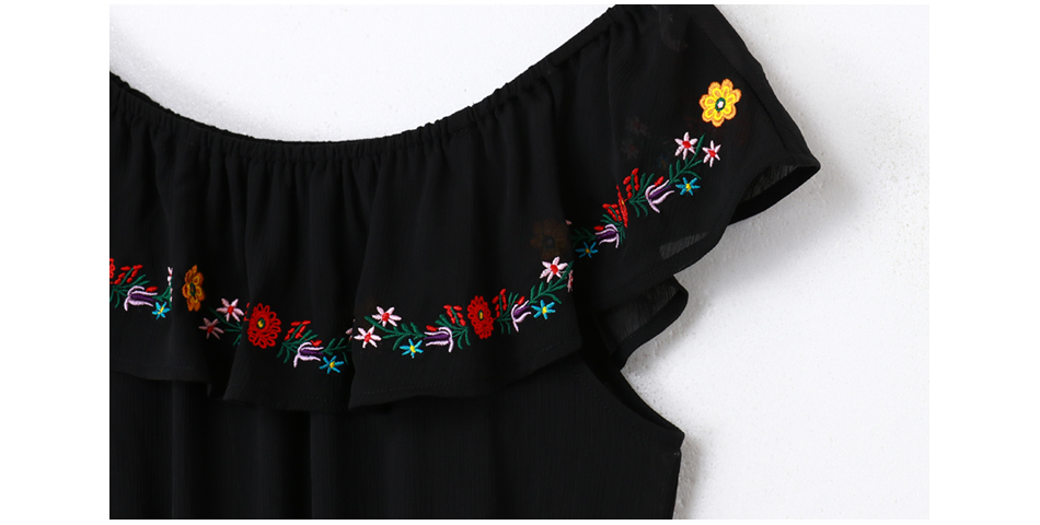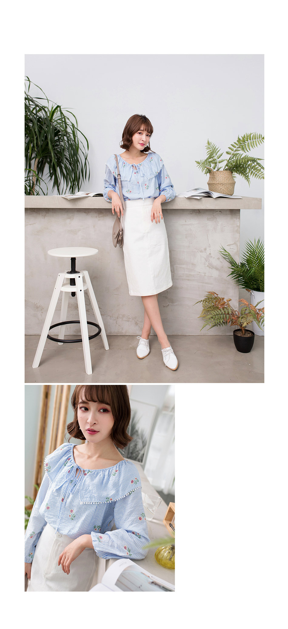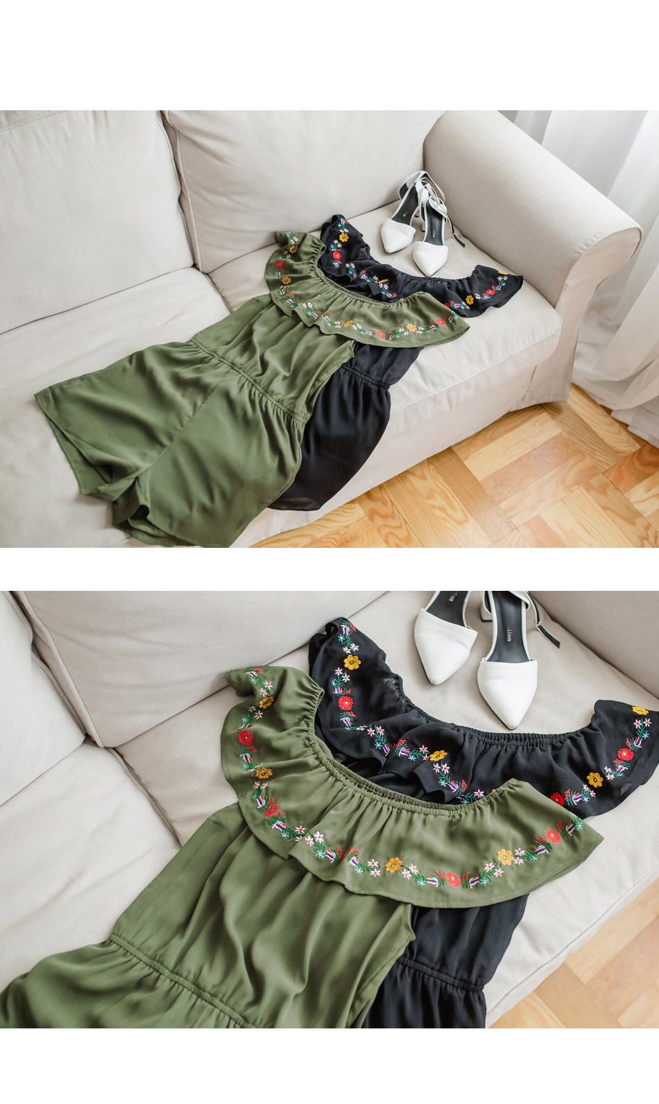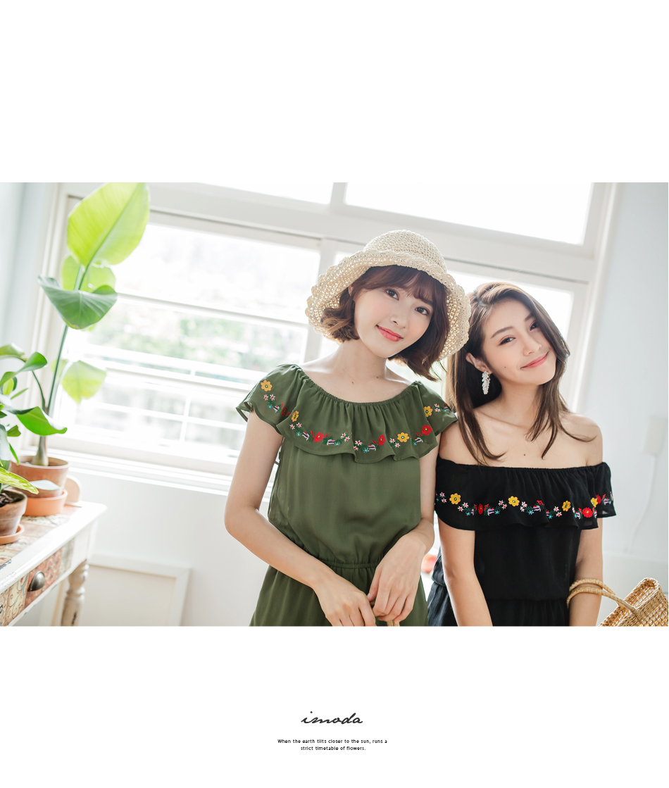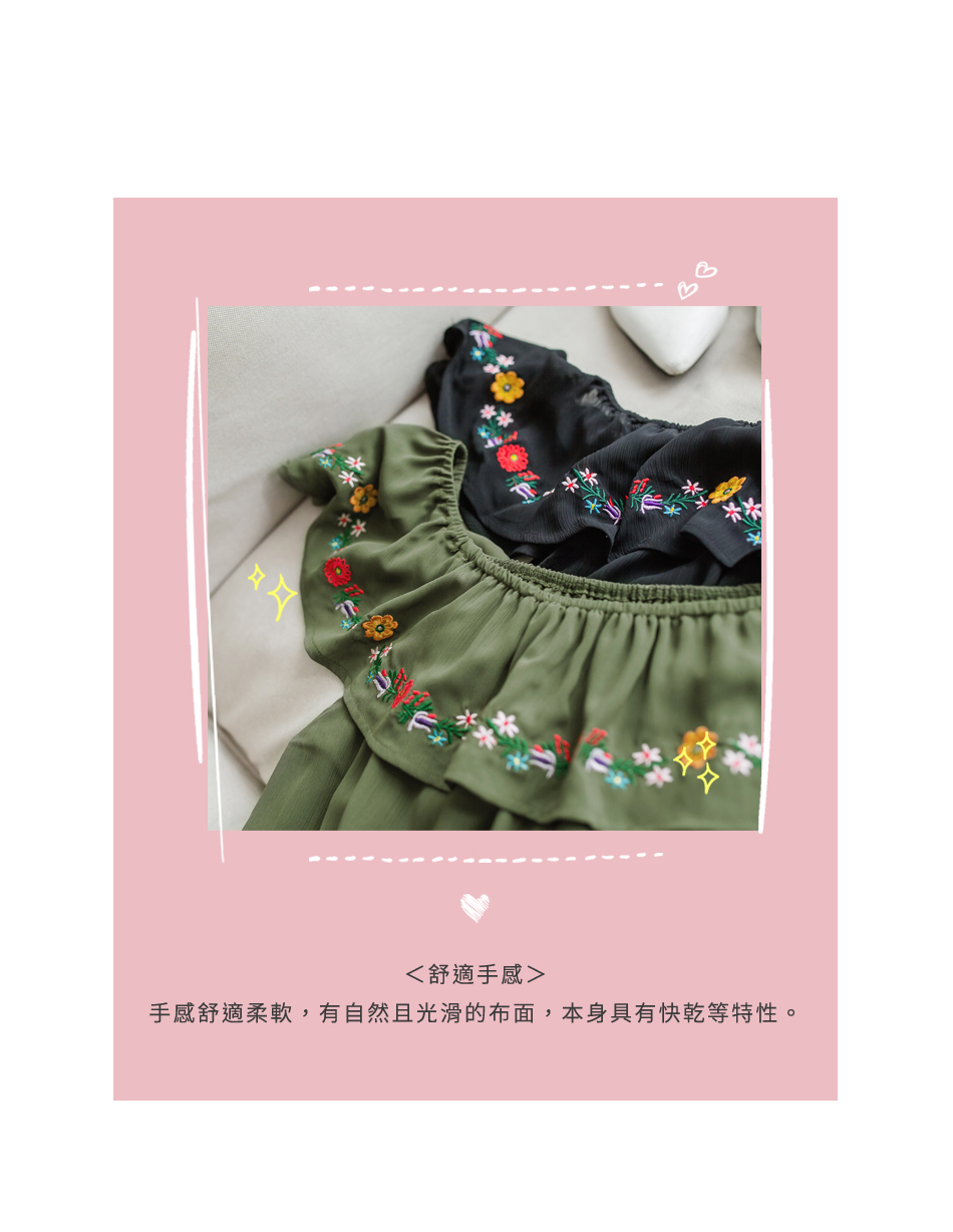 繽紛的花朵刺繡設計, 打造細膩的質感且甜美迷人~ 荷葉邊領口剪裁曾添優雅氣息, 可以拉成一字領或圓領展現不同品味風格~ ********************** 小提醒: 深色衣物建議單獨洗滌,以 售價:479