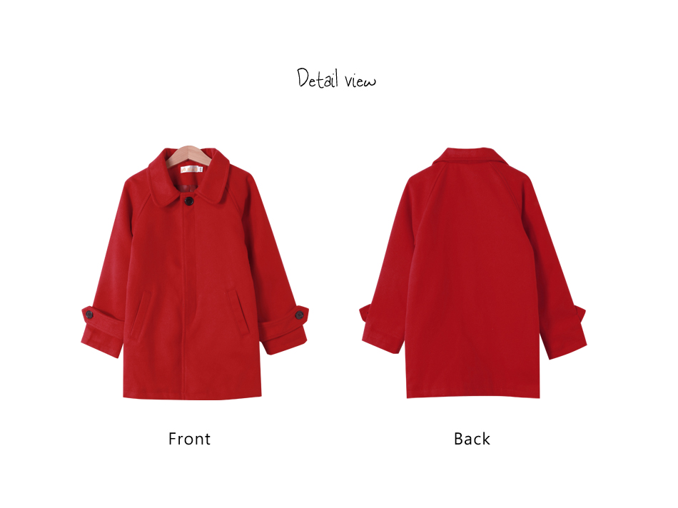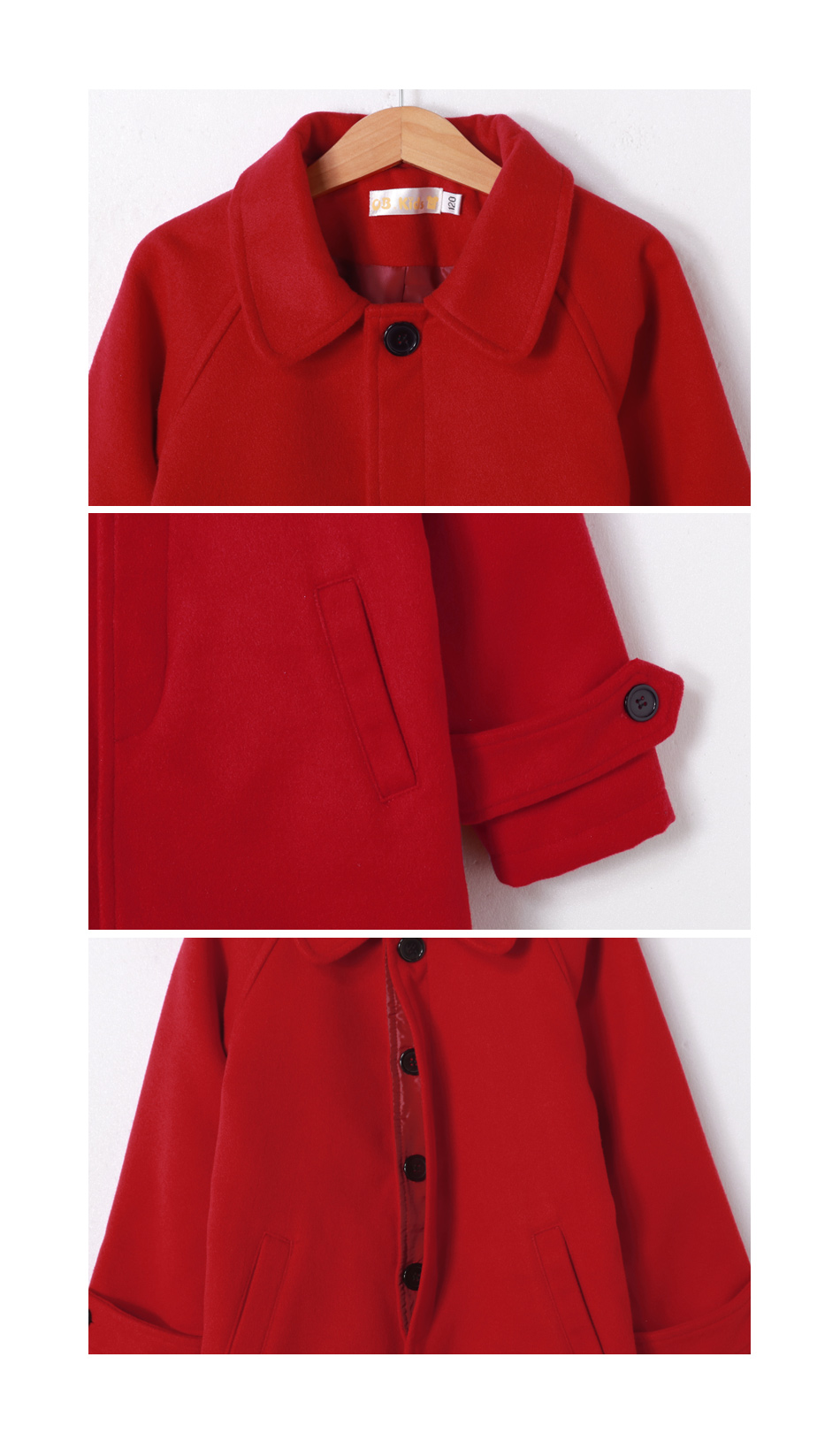紅色的毛呢質感外觀,讓小寶貝看起來活潑又俏皮~ 黑色則是最顯小寶貝氣質的顏色,很適合多樣化的穿搭。 袖口縫釦設計,讓質感加分,營造可愛卻又氣質的討喜印象! ********************** 售價:680