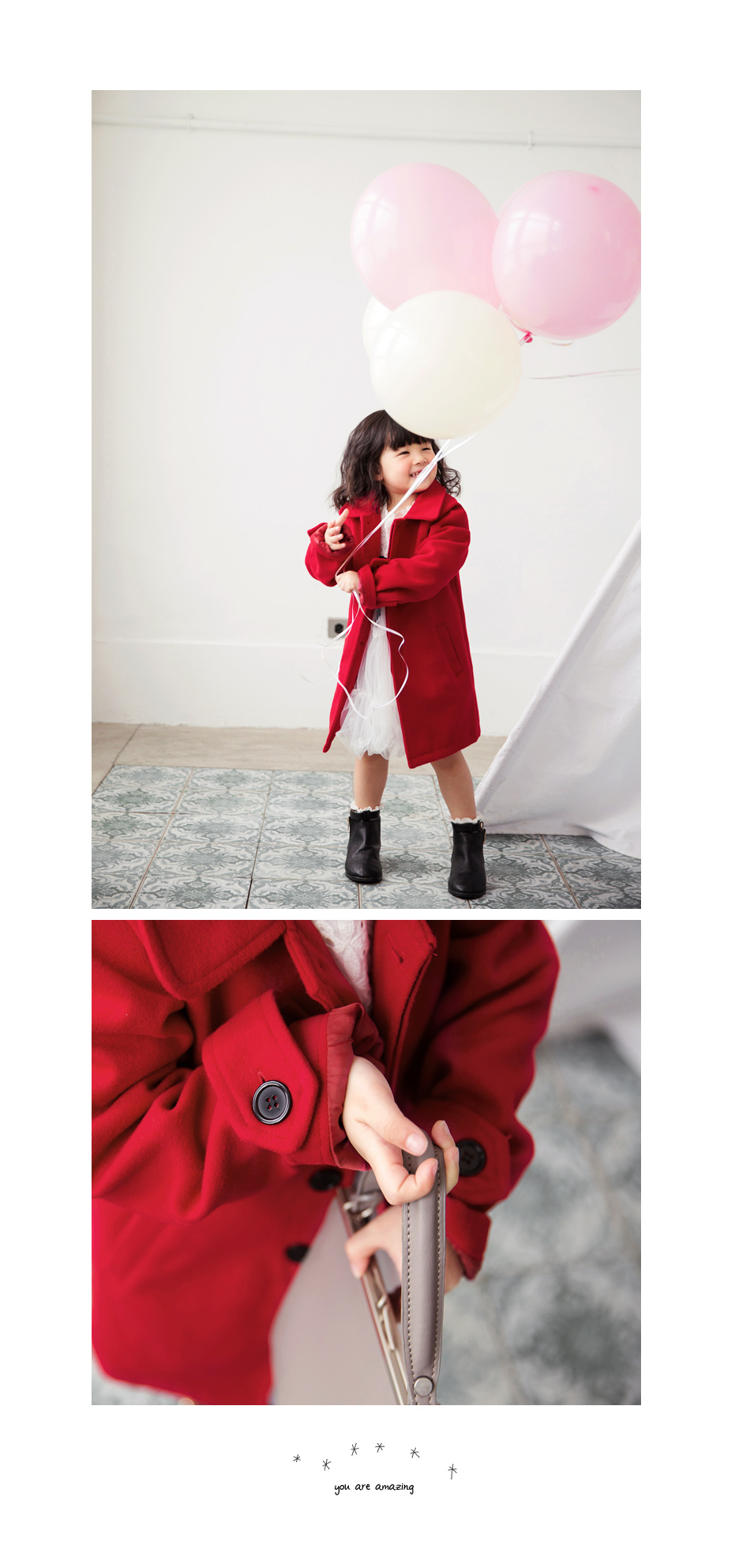 紅色的毛呢質感外觀,讓小寶貝看起來活潑又俏皮~