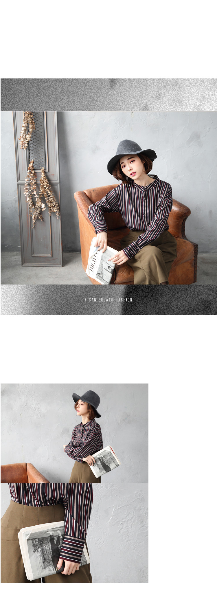 質感的配色直條紋搭配無領剪裁,展現女性知性美~