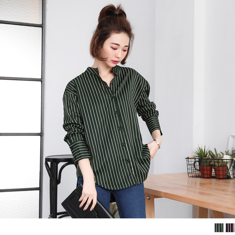 寬鬆版型 請依照個人喜愛的合身度購買喔 質感的配色直條紋搭配無領剪裁,展現女性知性美~ 落肩版型增添慵懶感受,打造舒適自在的休閒LOOK 隨意搭配牛仔褲立即營造氣質穿搭! ************** 售價:399