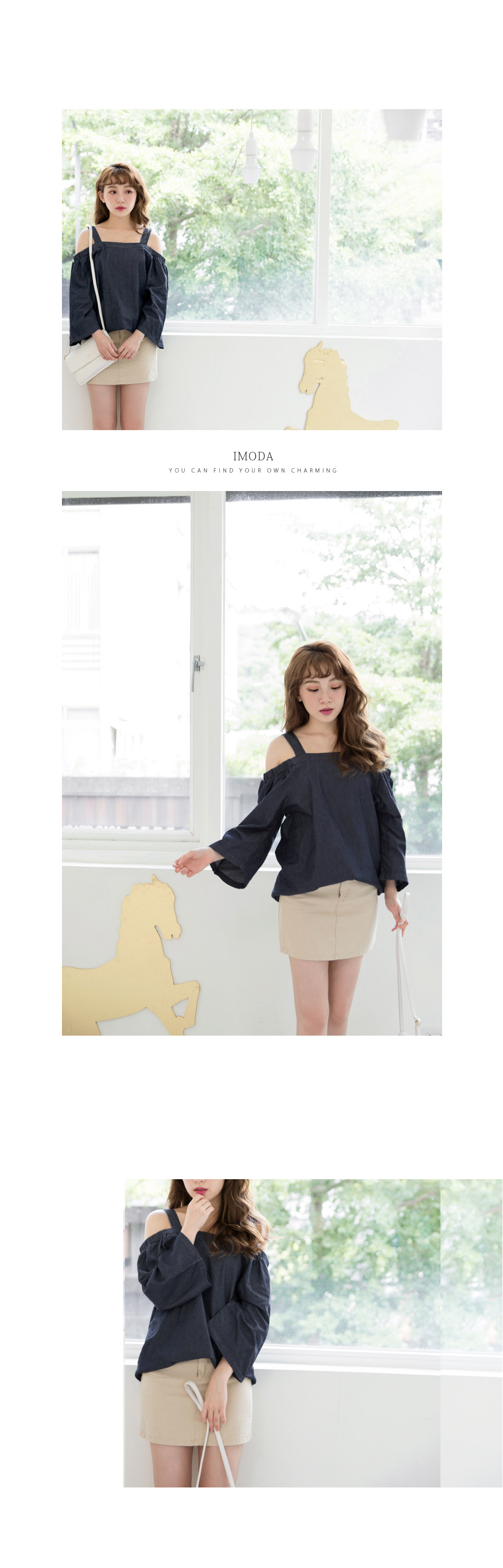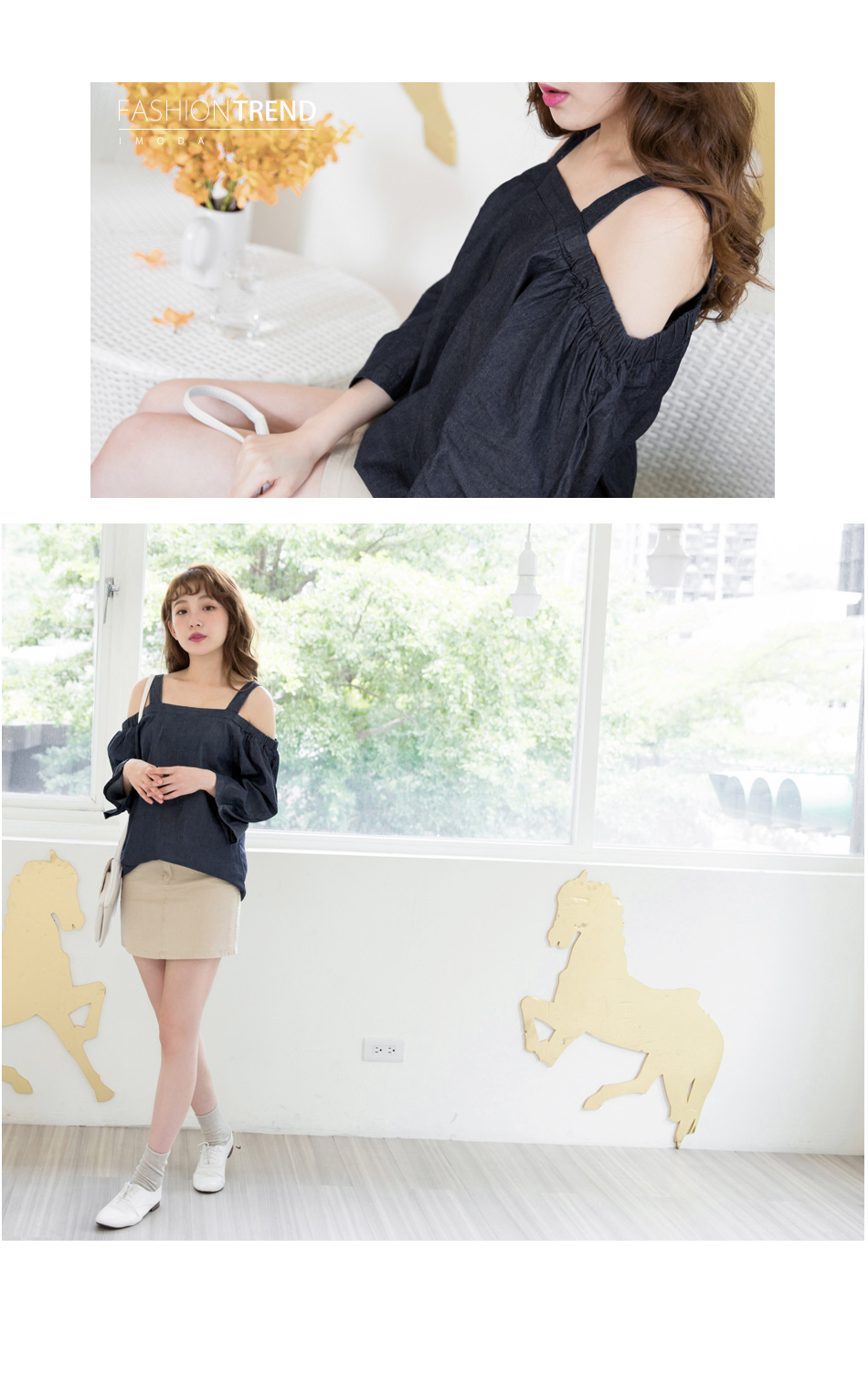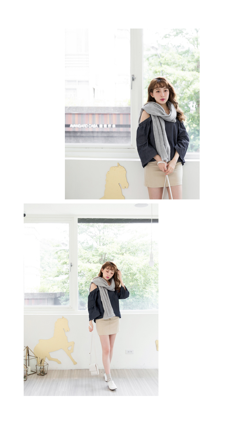 寬袖的設計帶點俏皮的感覺,露肩的造型可以展露妳的小性感~