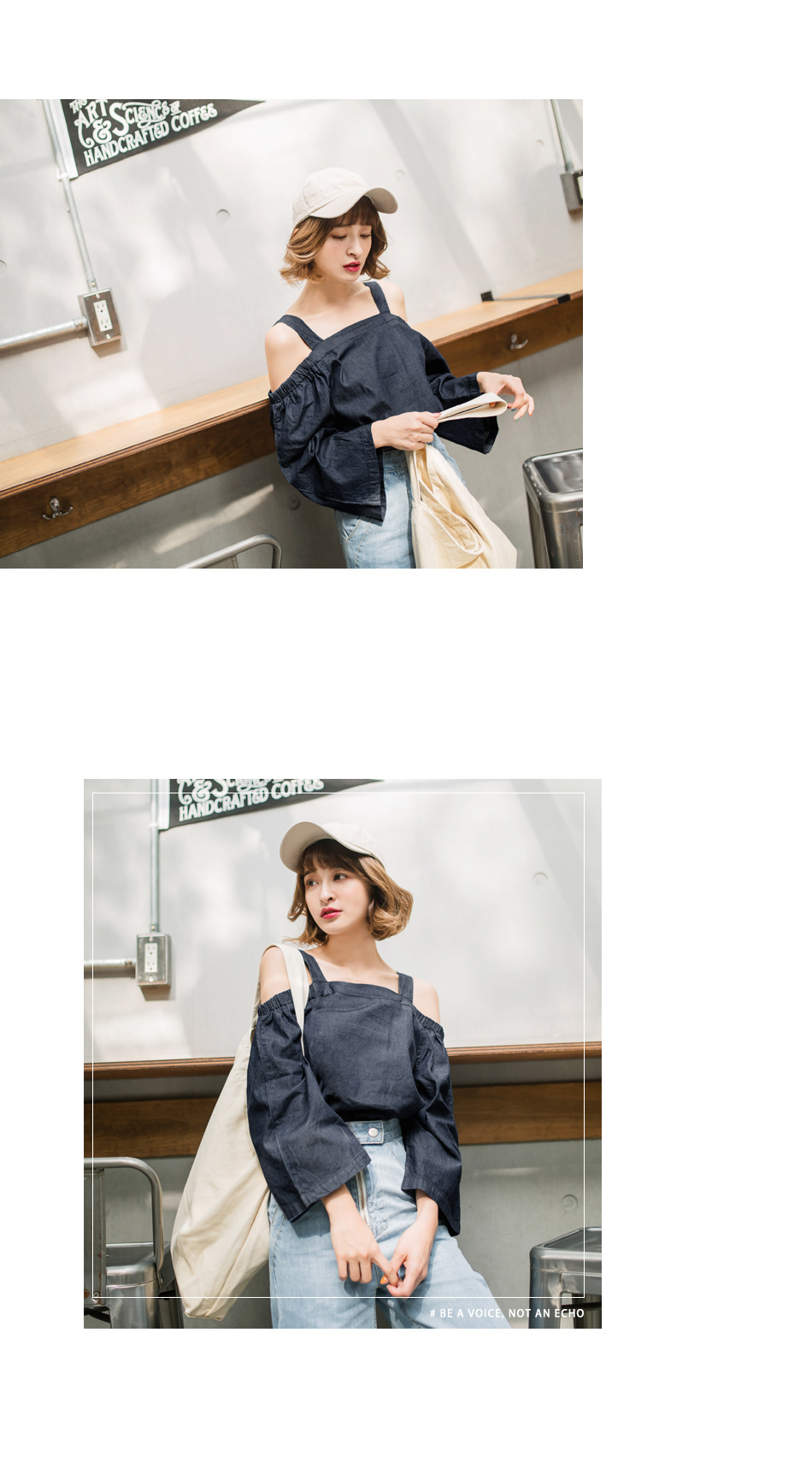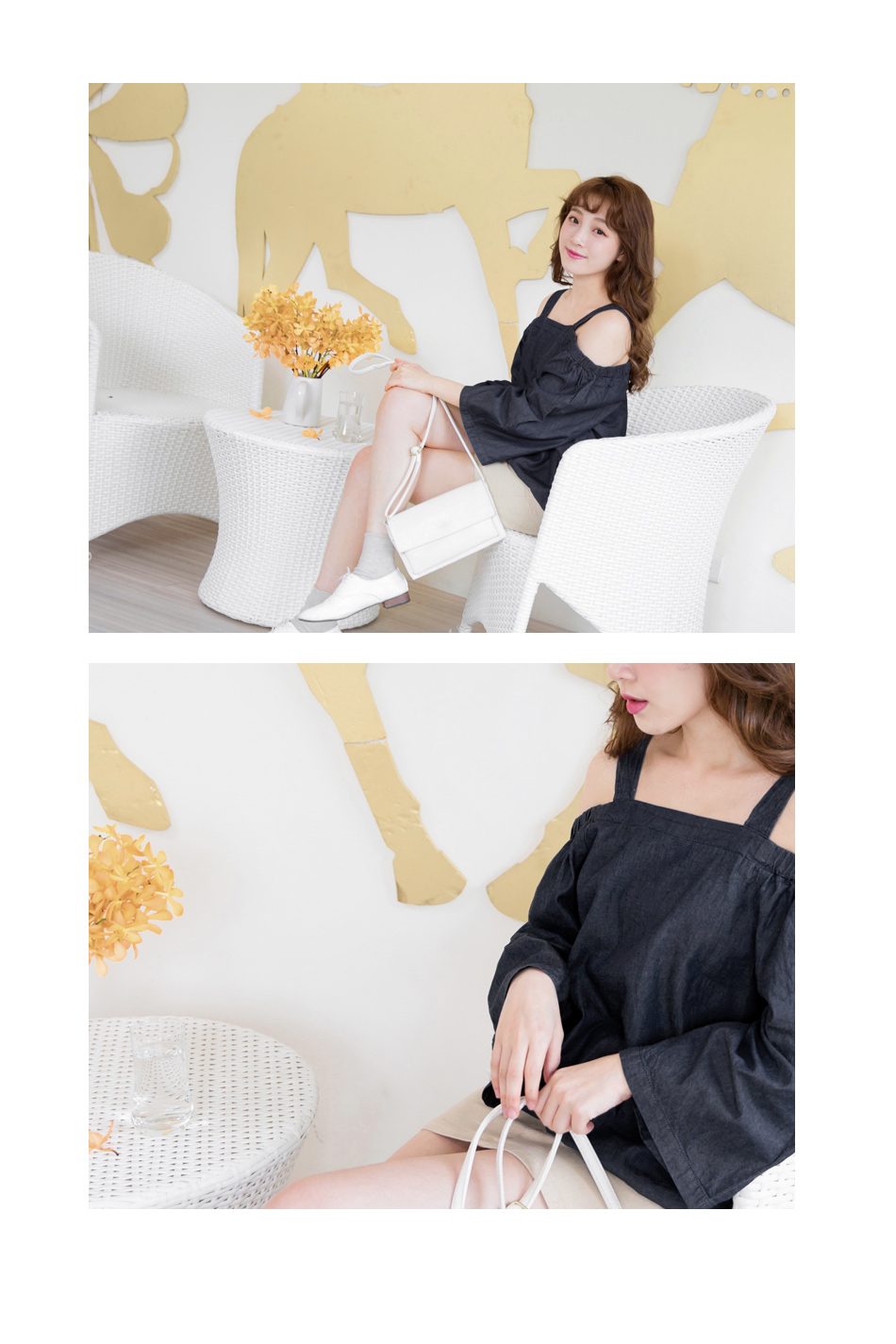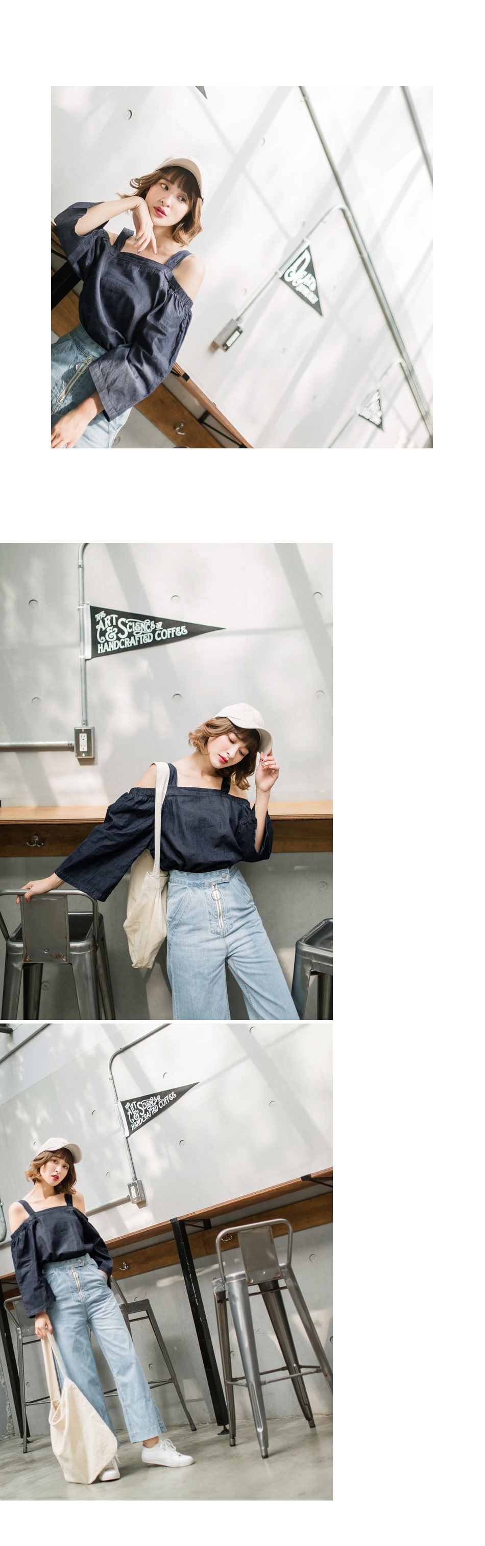 寬袖的設計帶點俏皮的感覺,露肩的造型可以展露妳的小性感~