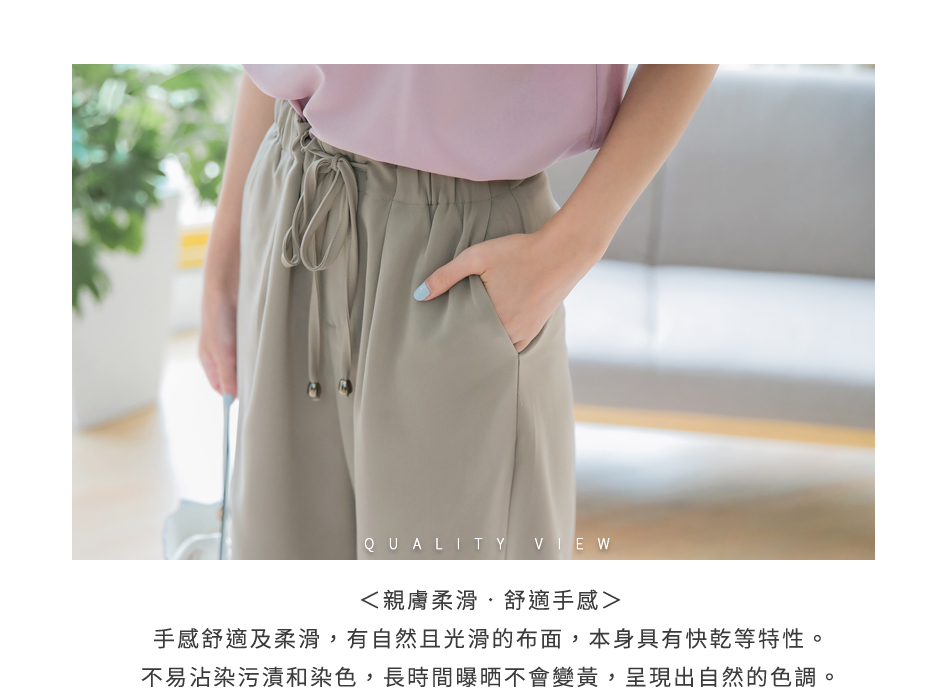 鬆緊腰頭搭配設計感的綁帶,