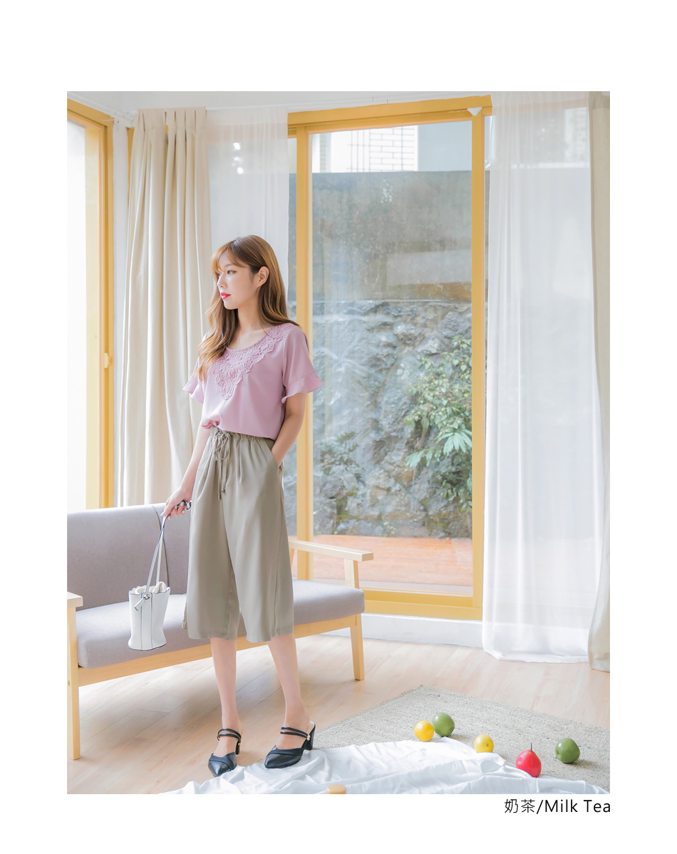 鬆緊腰頭搭配設計感的綁帶, 使穿著方便打造收腰的質感穿著~ 俐落的五分版型剪裁及飽和純色調, 展現簡約有型的設計感~ ********************** 小提醒:綁帶可調 深色衣物建議單獨洗 售價:449