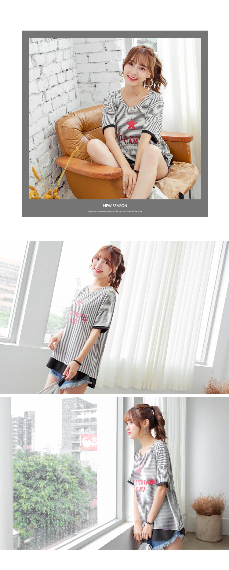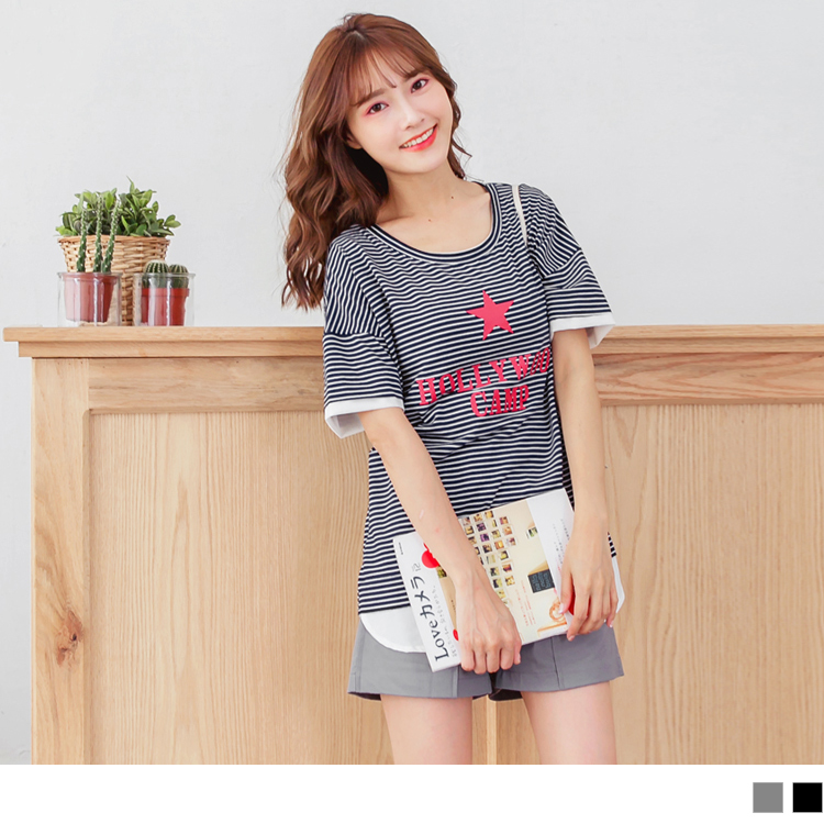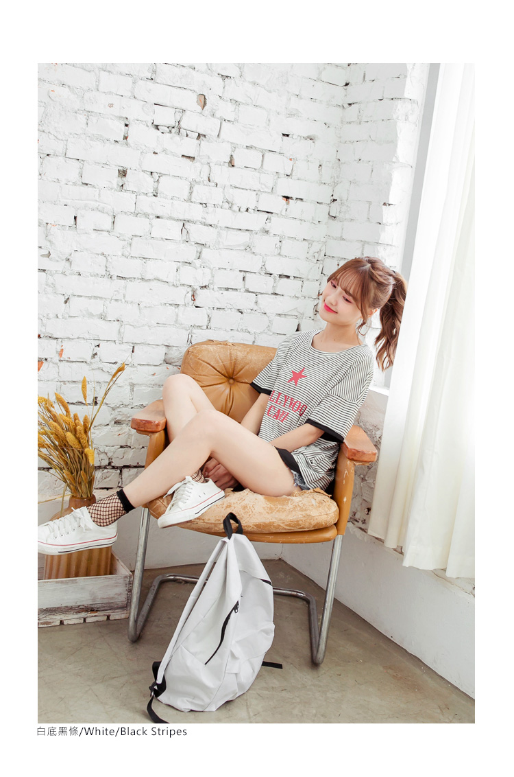簡約的橫條紋百搭耐看,綴上星星英文拼字燙印,提升亮眼度唷!