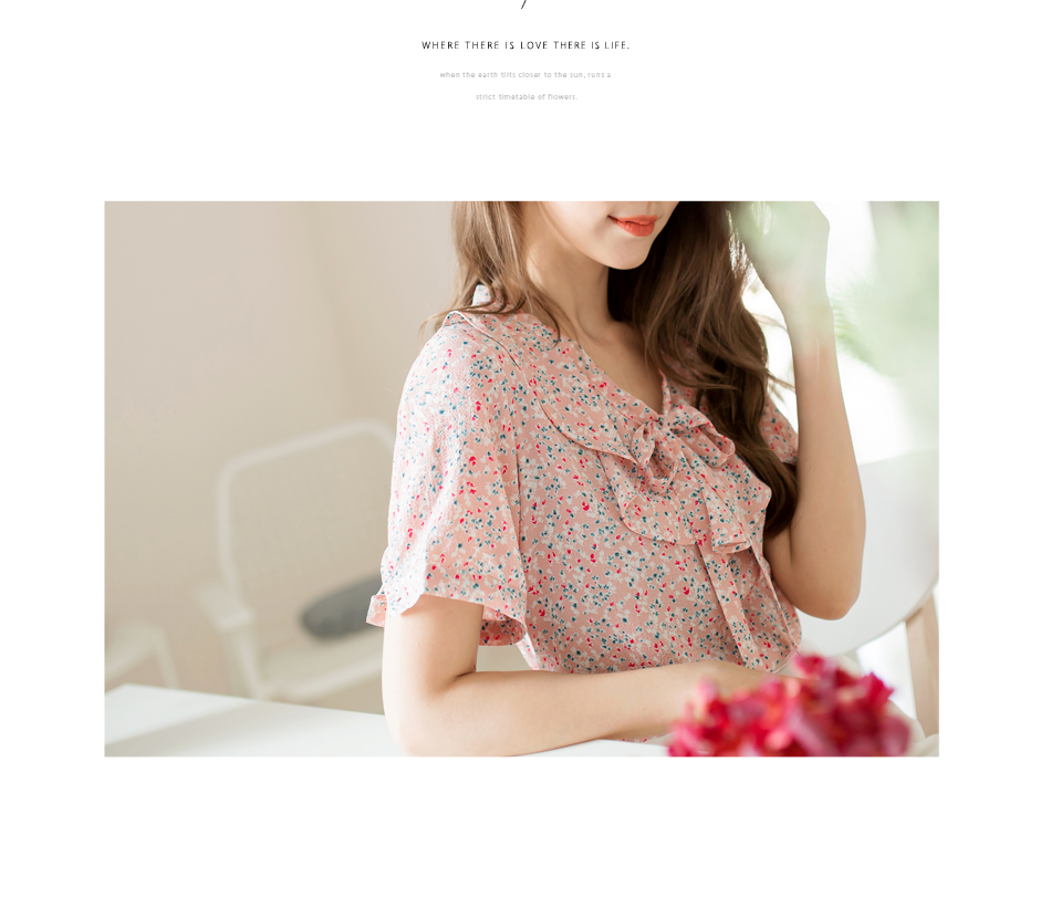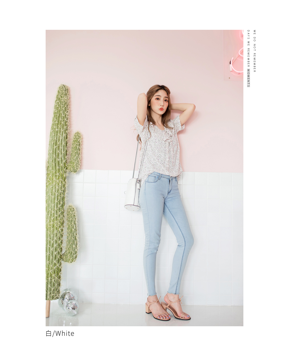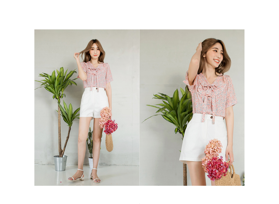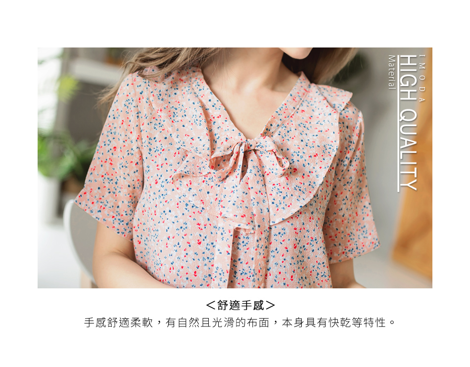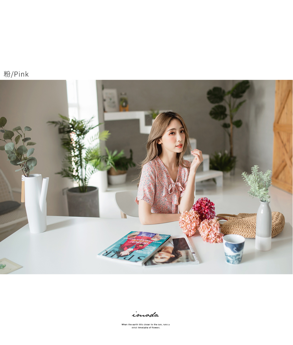 滿版碎花搭配雪紡面料, 展現飄逸感的清新甜美穿著~ 領結綁帶增添設計感, 領口的荷葉滾邊剪裁營造鄰家女孩氣息~ ********************** 小提醒:綁帶可調 深色衣物建議單獨洗滌,以 售價:369