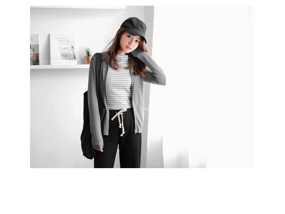 質感的色調搭配微微的橫條紋織紋,簡單百搭打造自在穿搭