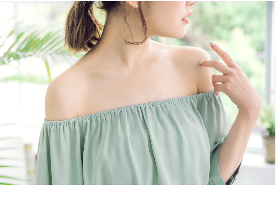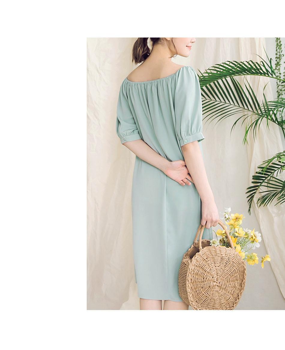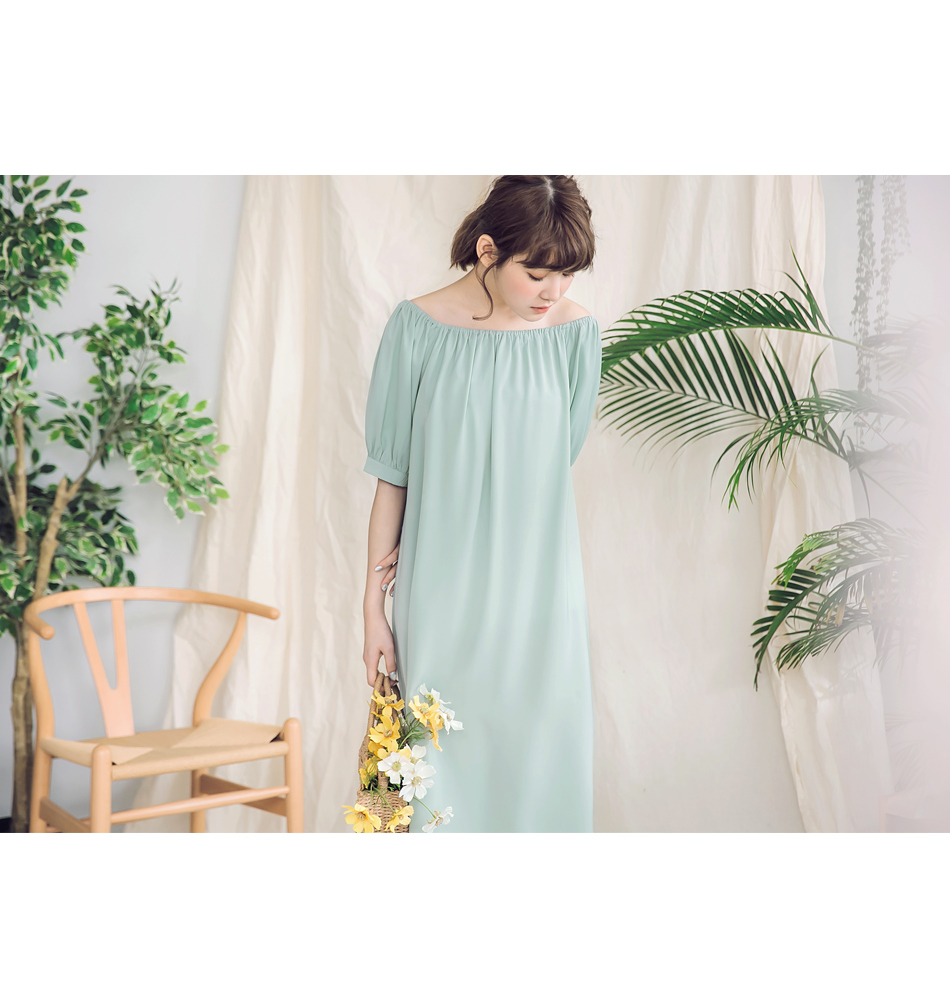 版型偏大 請依照個人喜愛的舒適度購買 絲柔滑的面料展現靈動浪漫氣息, 簡約穿出展現自然優美體態, 一字領設計露出肩頸線條, 彷彿清新的夏季微風柔和迷人! ********************** 售價:499