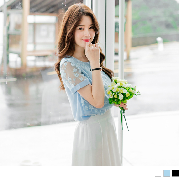 細膩的花朵刺繡薄紗X雪紡,細膩又輕柔~